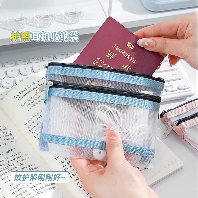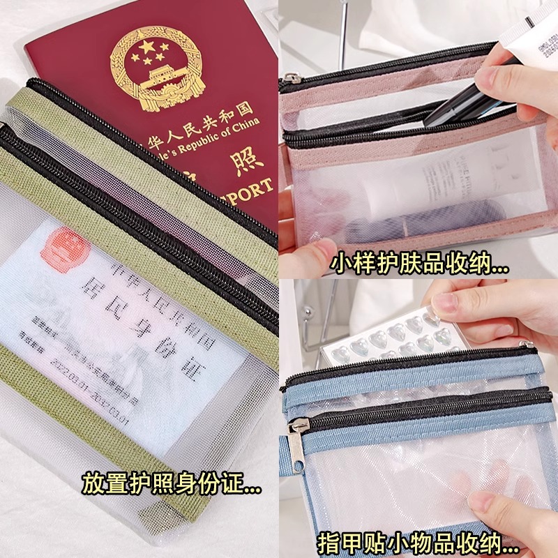 透明护照收纳包外出旅游便携随身包登机牌零钱卡包大容量证件一体卡包旅行网纱文件袋身份证2025新款拉链袋子