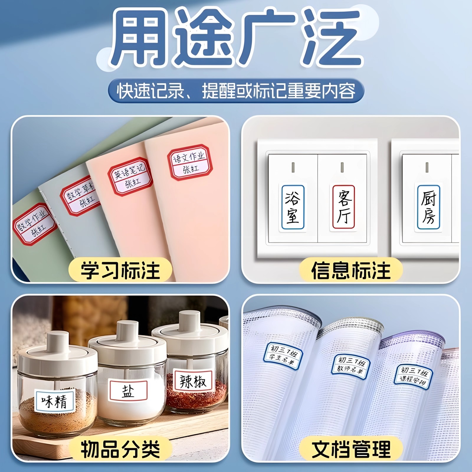 防水标签贴纸手写记号贴黏贴标记pet不干胶厨房调料收纳分类姓名贴日期索引贴无痕名字不留胶不留痕家用书写
