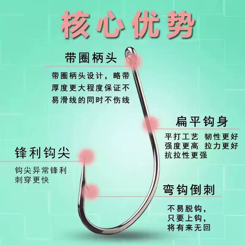 管付丸世鱼钩有倒刺长柄进口带圈散装歪嘴有孔矶钓路亚野钓海钓钩