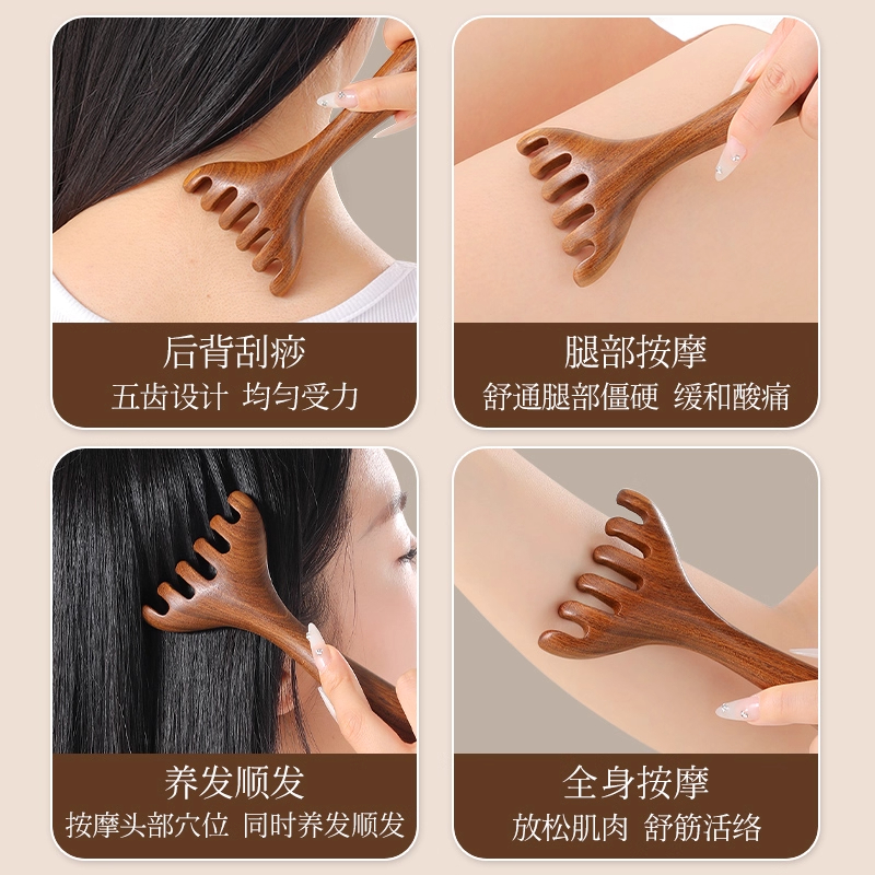 五爪头部按摩经络梳子养生头疗工具天然檀木头皮淋巴刮痧疏通神器