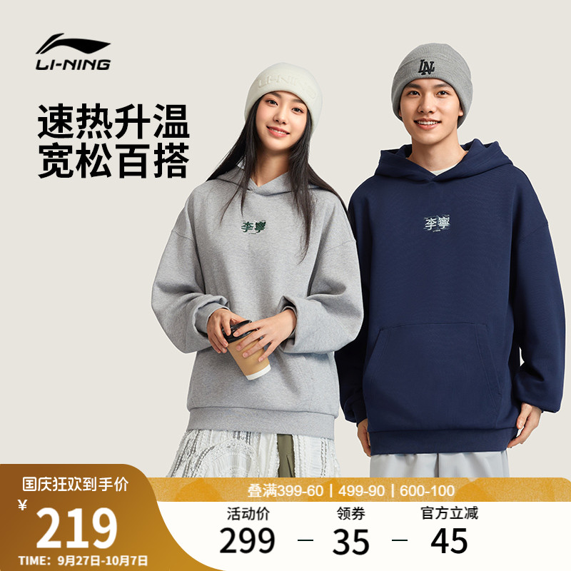 李宁卫衣女秋季官方长袖宽松复古连帽美式上衣情侣装帽衫运动服男