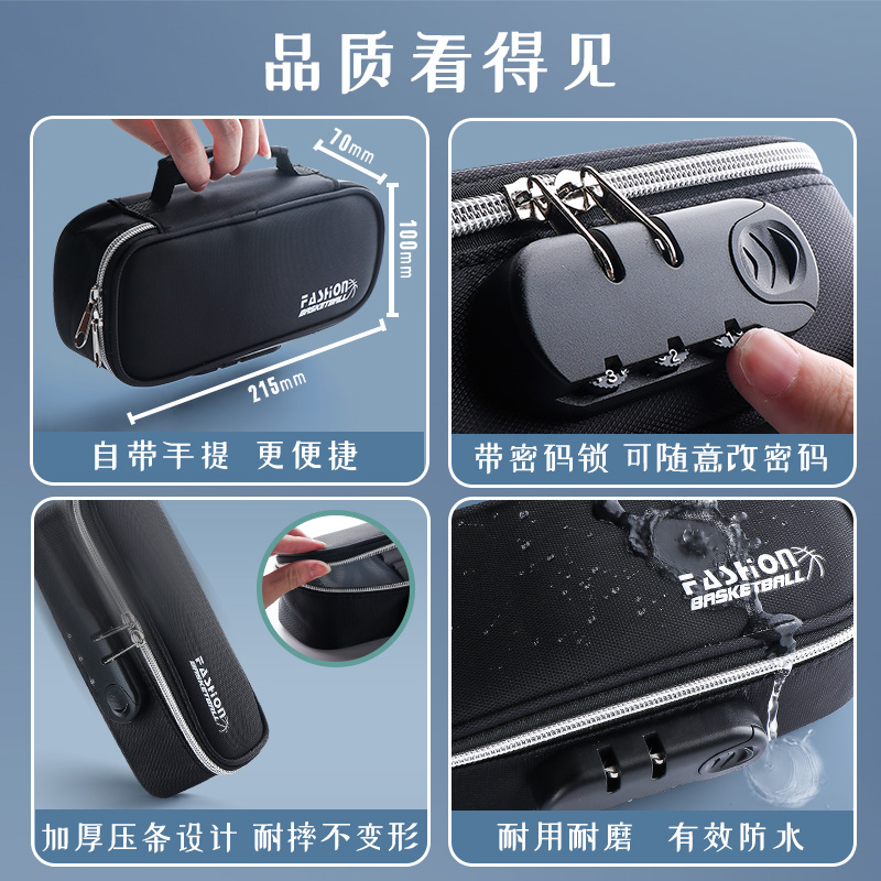 耐脏摔不坏!带密码锁文具盒男孩款有锁笔袋儿童小学生多功能黑科技铅笔盒简约大容量笔盒幼儿园男童一年级