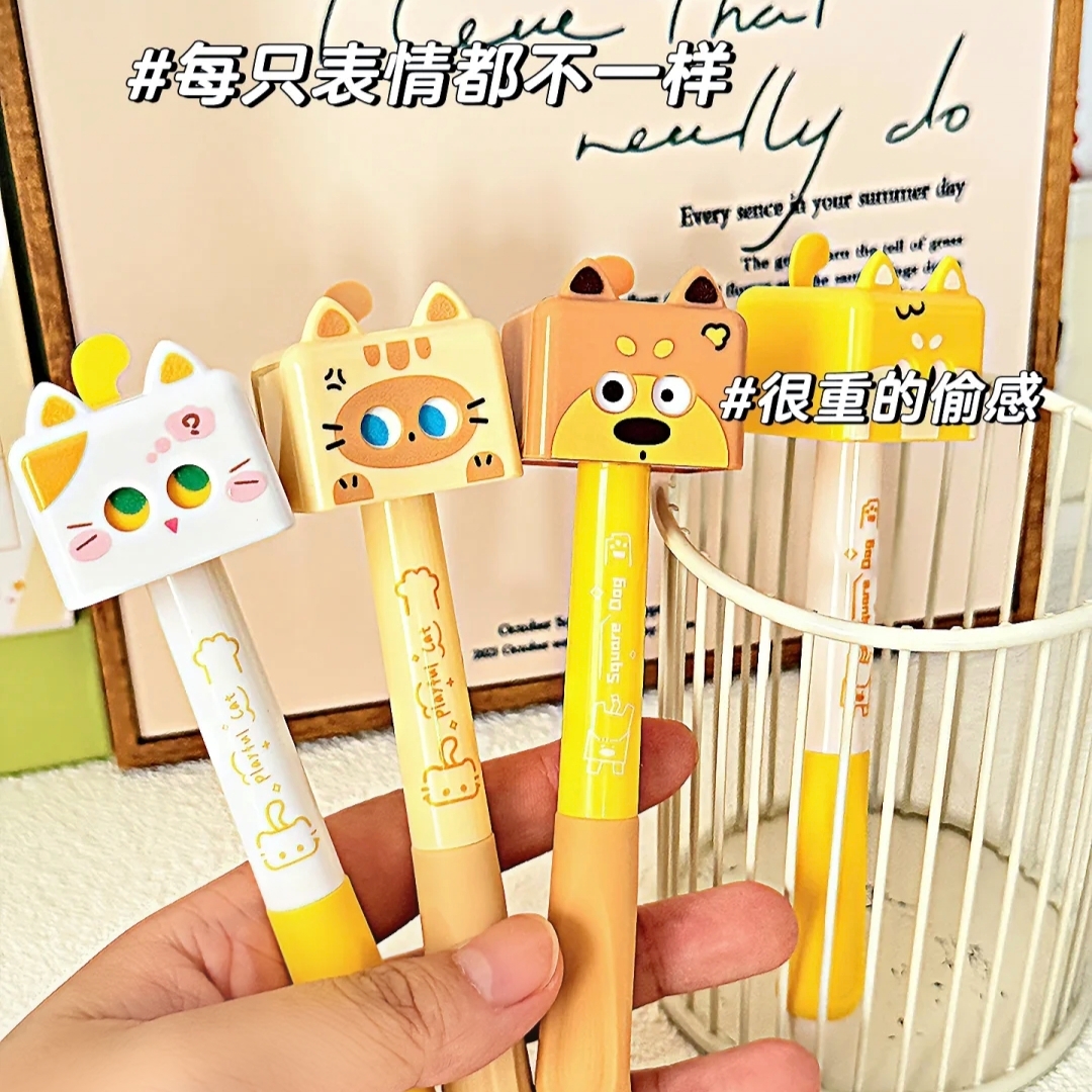 慕乐方块拍拍乐猫咪中性笔高颜值创意按动笔学生有趣解压0.5黑笔