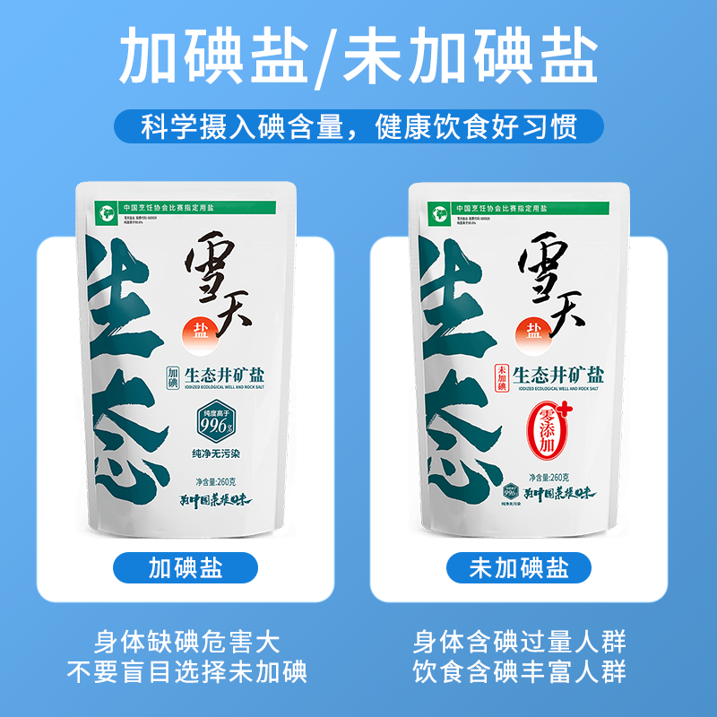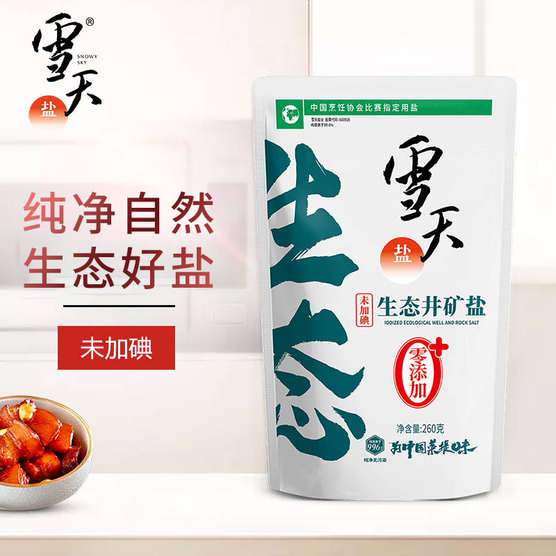 【零添加】雪天生态井矿盐无碘加碘盐无抗结剂家用食用盐260g/包