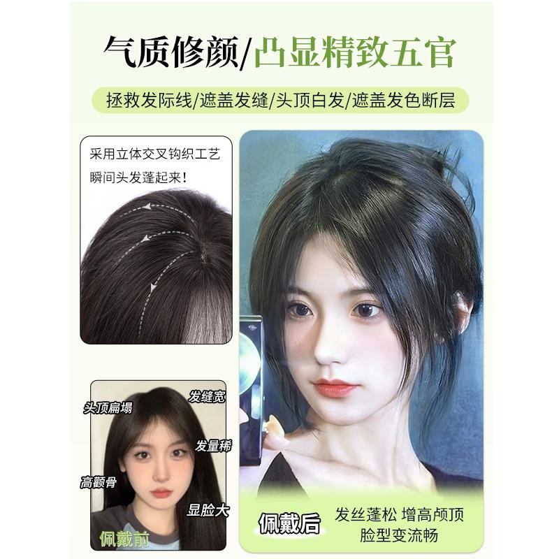 假发女片头顶假发片真发全真人发八字法式刘海高颅顶增发量蓬松新