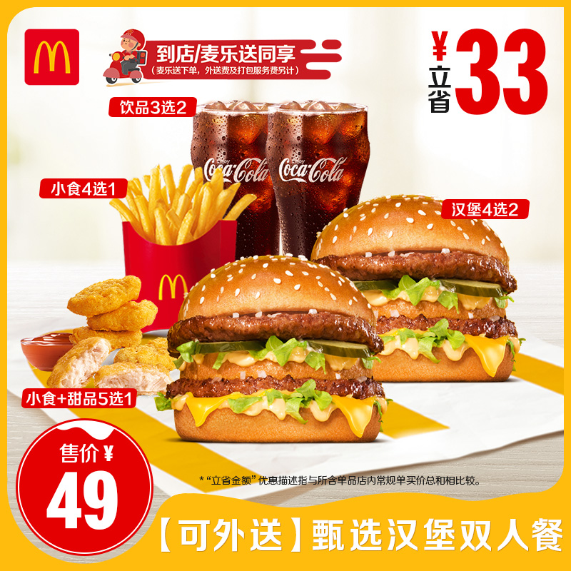【下拉详情有惊喜】麦当劳 甄选汉堡双人餐 单次券【谨防诈骗】