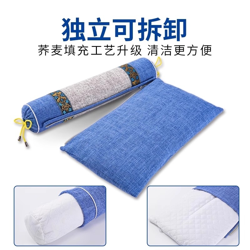 荞麦颈椎枕护颈椎助睡眠枕头成人家用艾草芯护腰护颈圆柱形两用枕