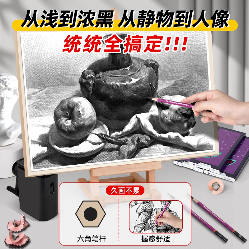 日本进口三菱素描铅笔9800绘画初学者速写绘图美术画画套装美术生专用工具三棱HB/2B/4B/6B/2H/10b/2比素描笔