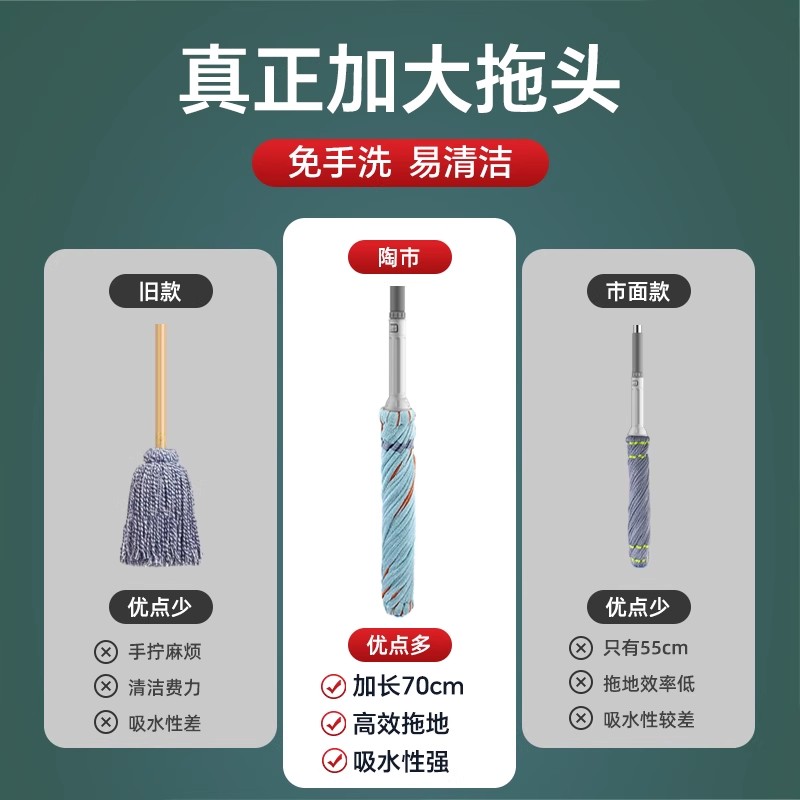 干湿两用木杆毛巾布拖把棉线家用圆头老式墩布吸水不掉毛一拖净