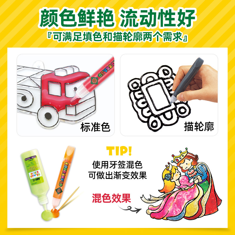 AMOS韩国进口安全放心DIY手工玻璃胶画棒颜料