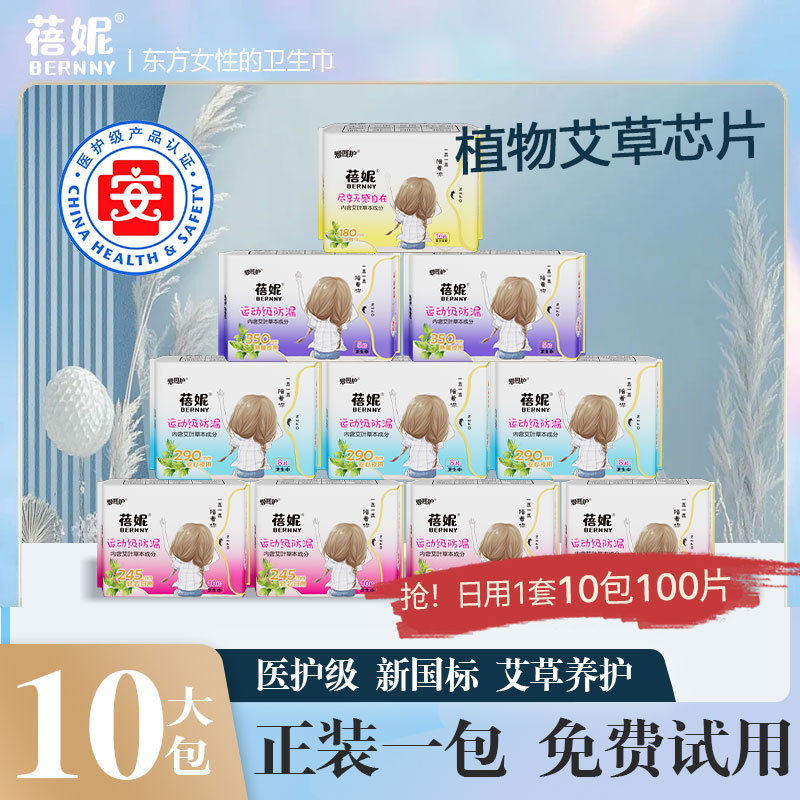 【10大包】医护级艾草卫生巾超薄透气日夜用亲肤绵柔瞬吸柔软家用