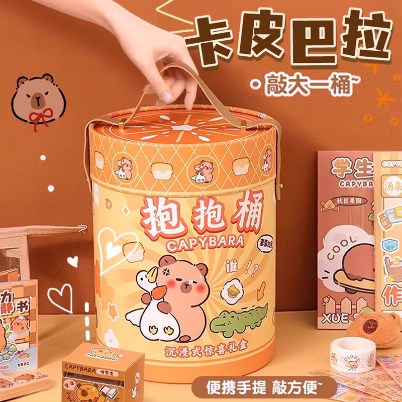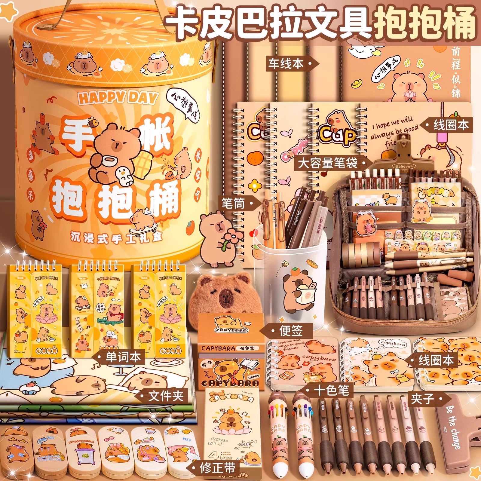 六一儿童节礼物卡皮巴拉抱抱桶文具套装奶油胶咕卡豪华版儿童玩具女孩子6岁以上小学生盘全套女生贴纸手账盒1