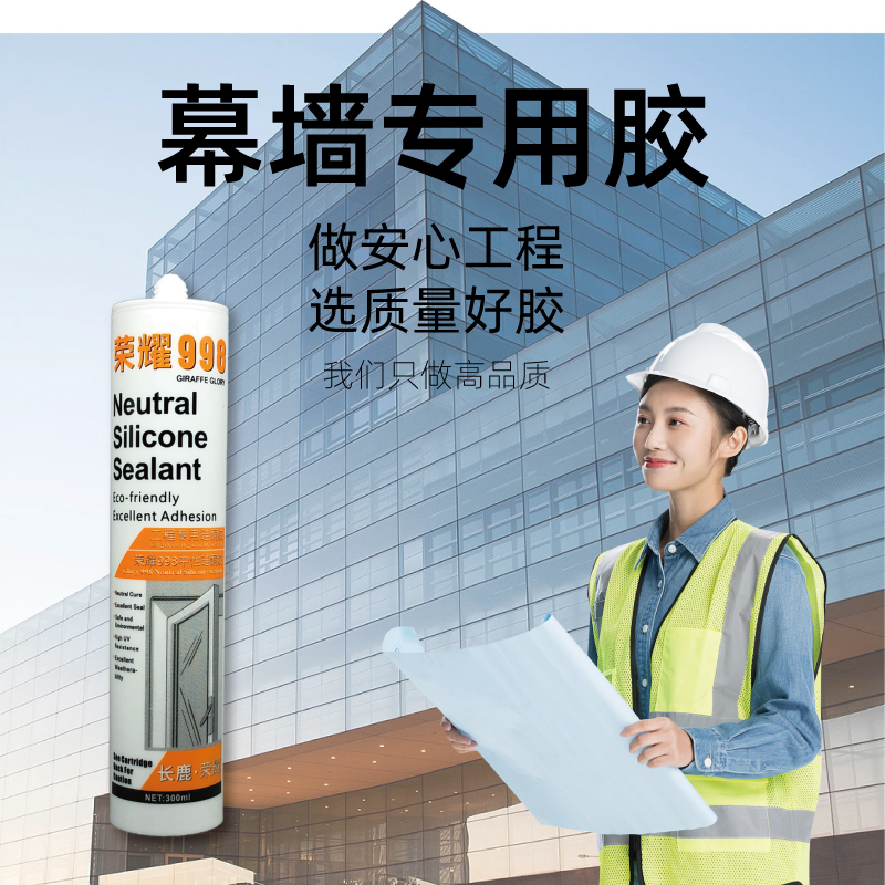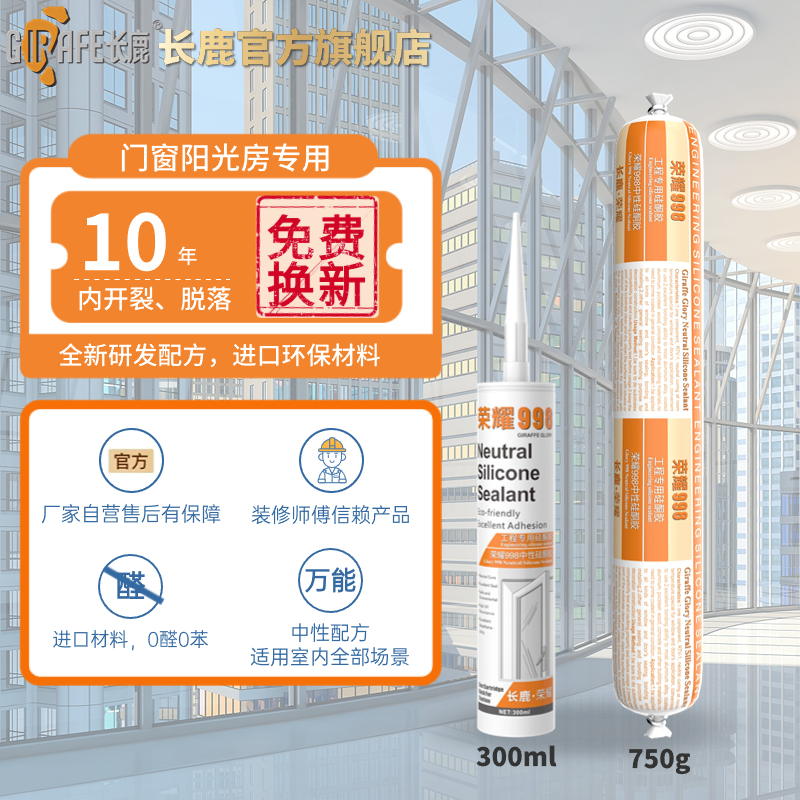 长鹿玻璃胶荣耀998中性硅酮门窗幕墙工程专用防水耐候胶透明瓷白