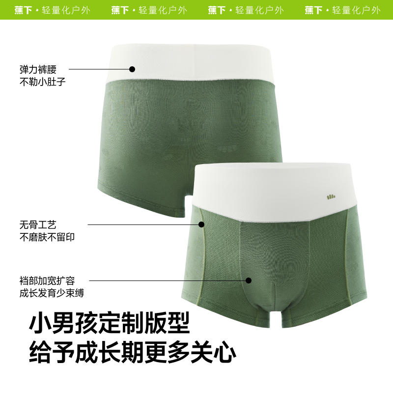蕉下儿童透气内裤男女童3条装柔软排汗宝宝抗菌莫代尔a类平角裤