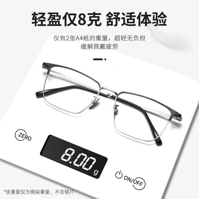 纯钛黑框防蓝光抗辐射疲劳近视眼镜男大框护目镜有度数可配平光女