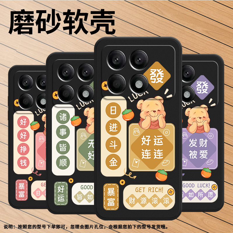 适用小米POCOF6Pro手机壳5G全包边POCOF6Pro保护壳无限好运Xiaomi磨砂壳耐磨小众搞钱要紧时尚趣味软壳日渐富