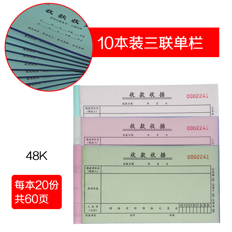 收款收据南盛无碳带复写财务二联三联多栏单栏式今收到收据包邮