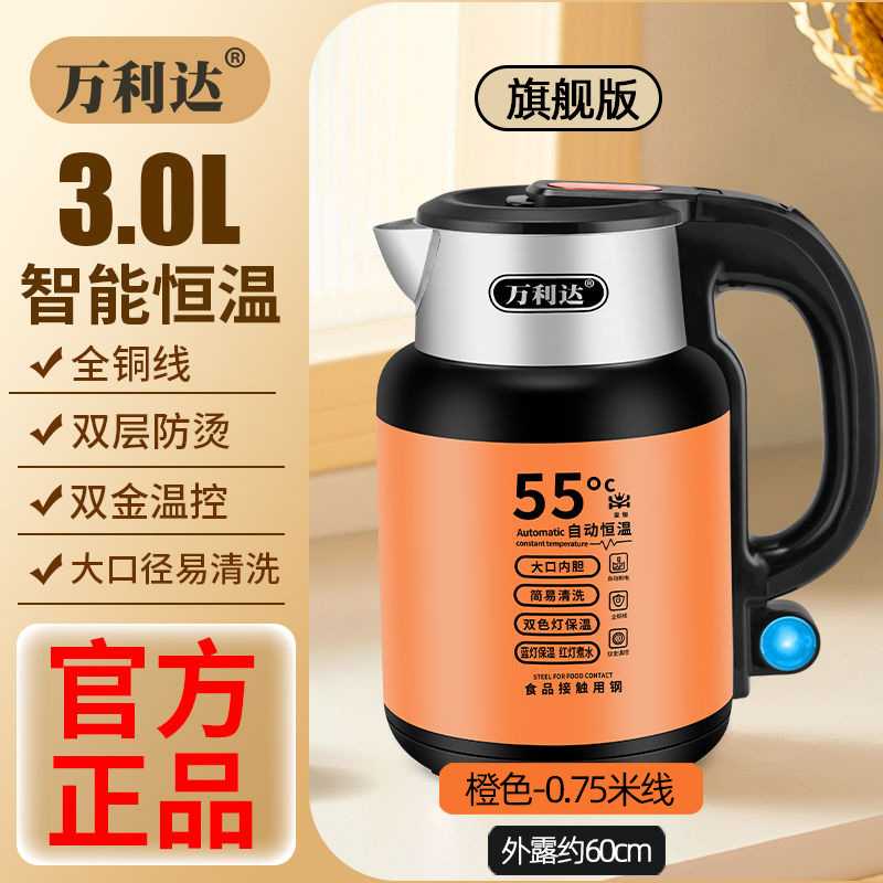 万利达电热水壶家用一体烧水壶不锈钢自动断电热水壶快速沸腾