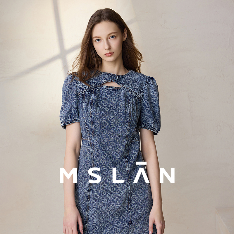 MSLAN新中式牛仔裙 复古国风提花镂空旗袍连衣裙