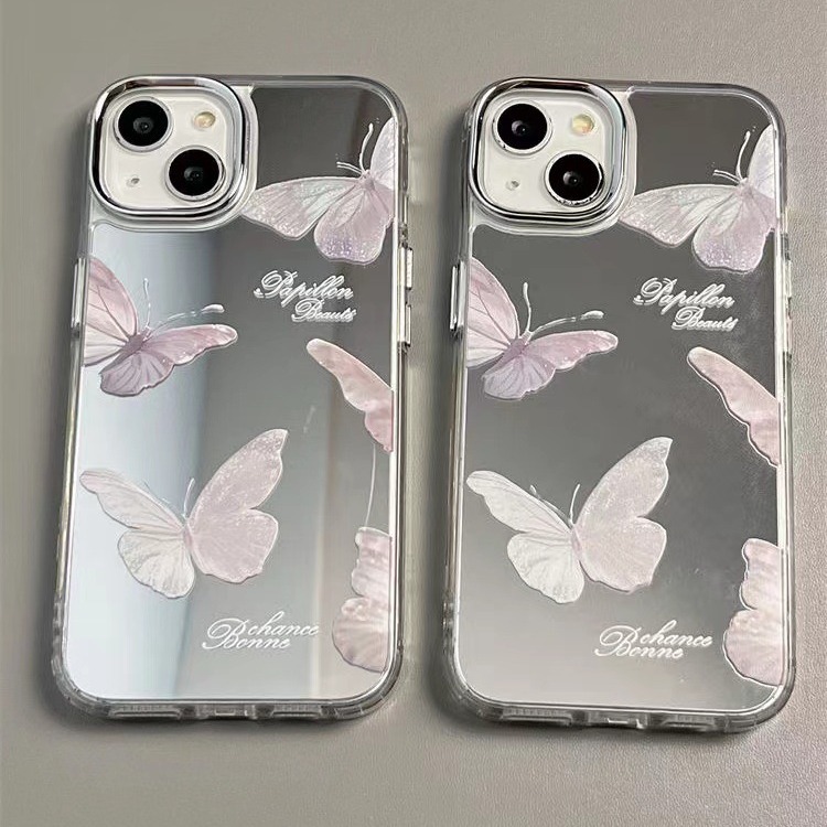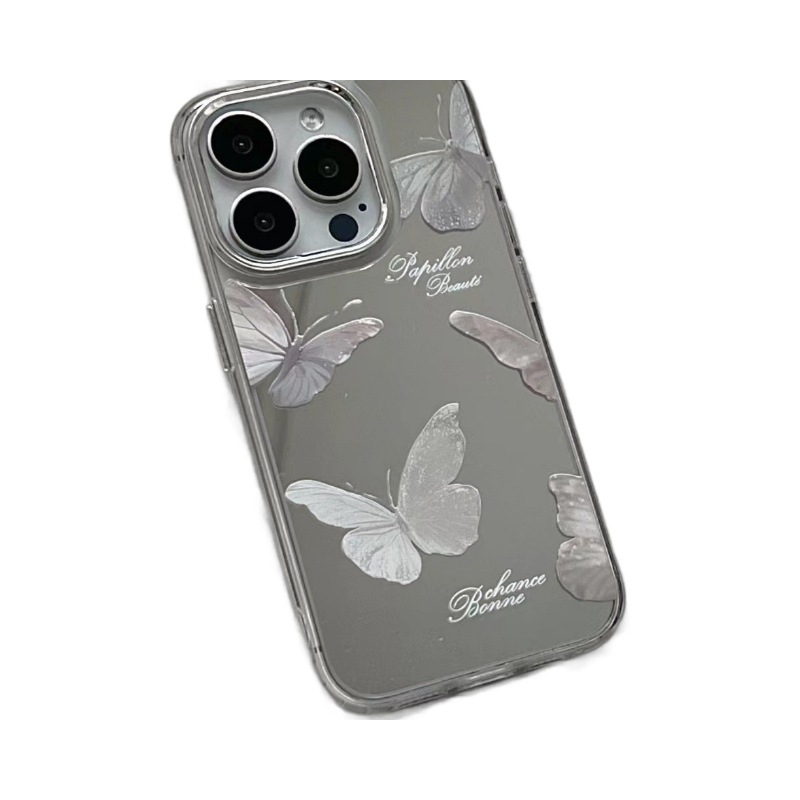 以壳为主 英文蝴蝶16pro适用苹果15promax手机壳iPhone14镜面13软壳高级12保护壳11仙女保护套简约
