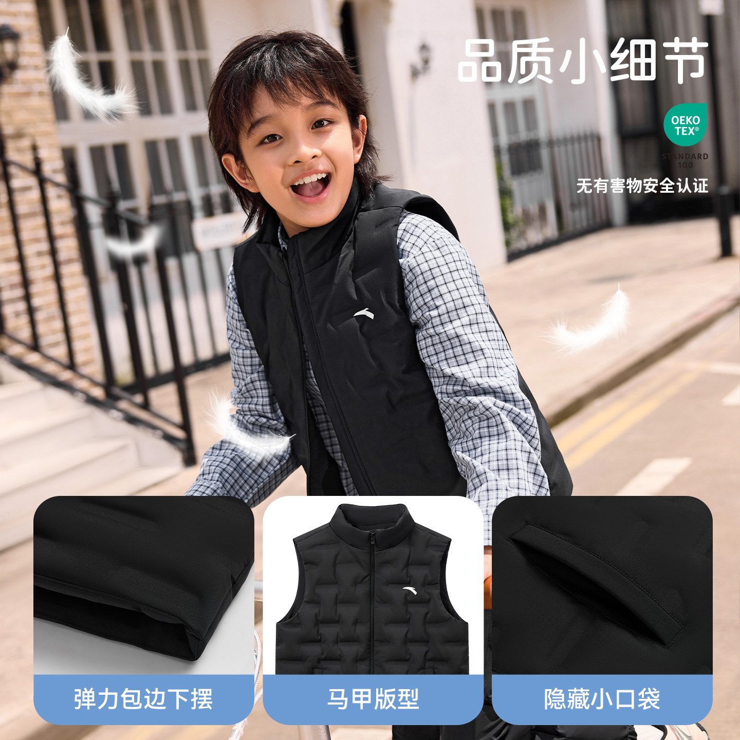 安踏儿童男女童轻薄羽绒马甲2025舒适保暖中大童运动休闲百搭夹克