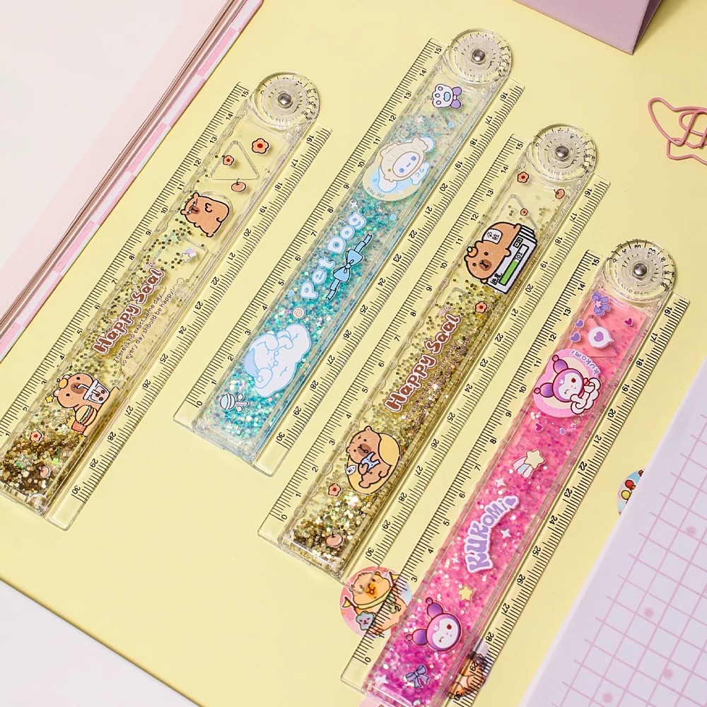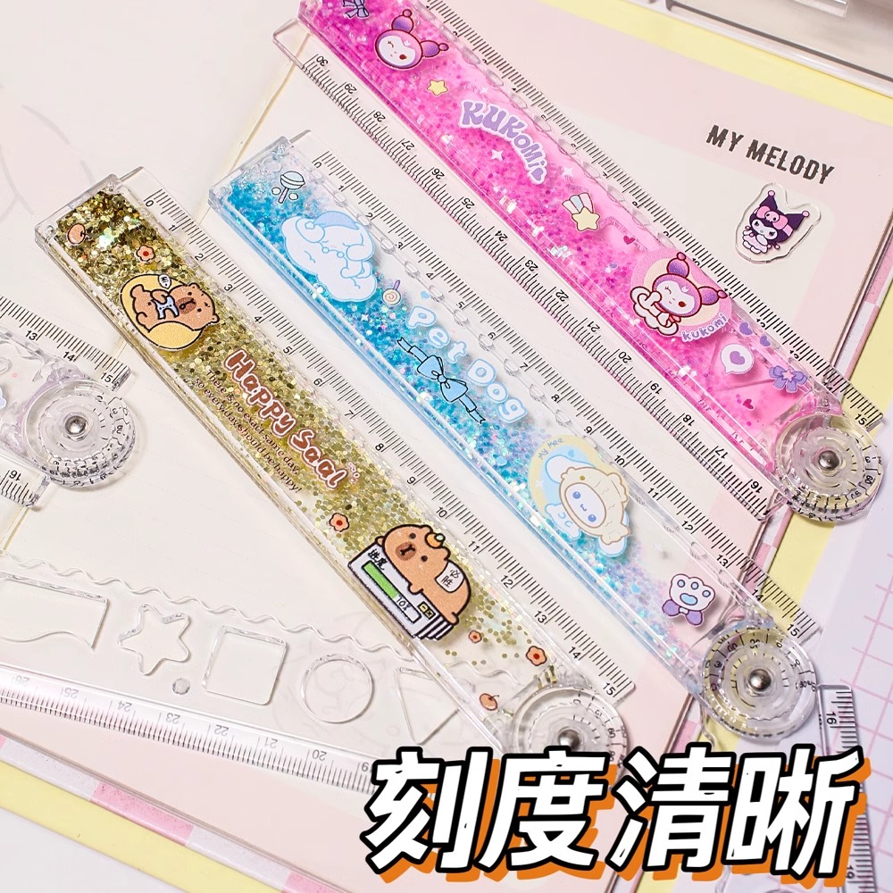 30cm加长流沙折叠尺子带波浪线可爱学生专用测量文具直尺放笔袋盒