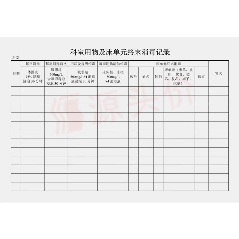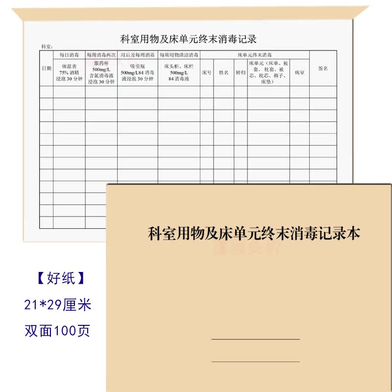 科室用物及床单元终末消毒记录本医院登记资料服药杯吸引瓶床头柜
