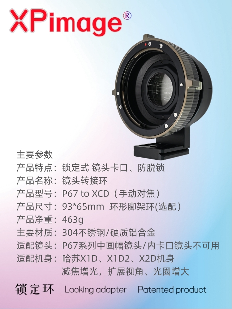 XPIMAGE锁定版P67镜头转接哈苏X1D X2D转接环 减焦增光 光圈增大