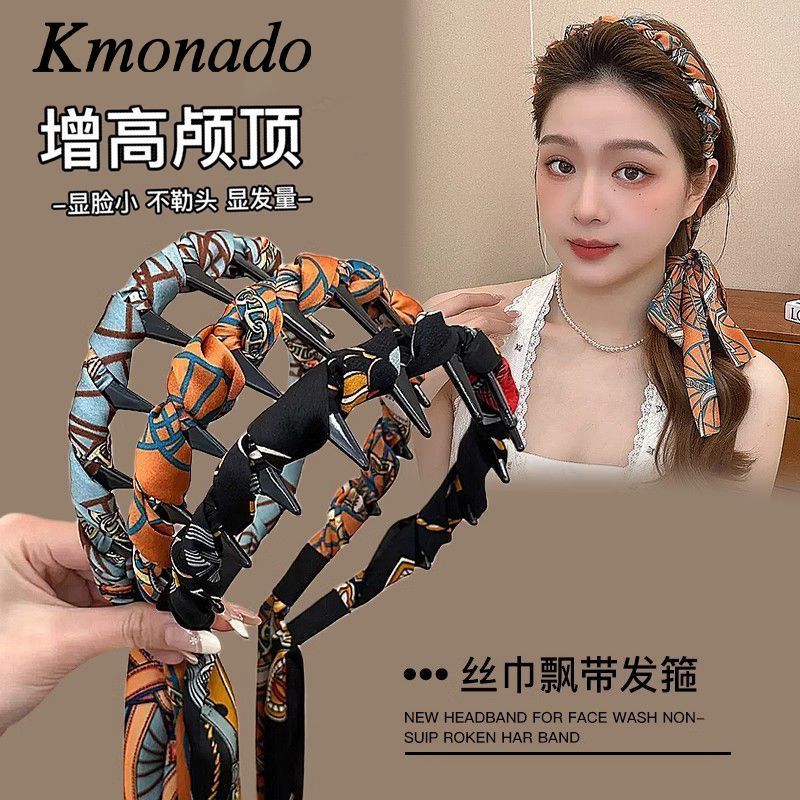 粿复古一体发箍飘带缎面发带丝巾绑发压发高颅顶头箍头饰编发带齿