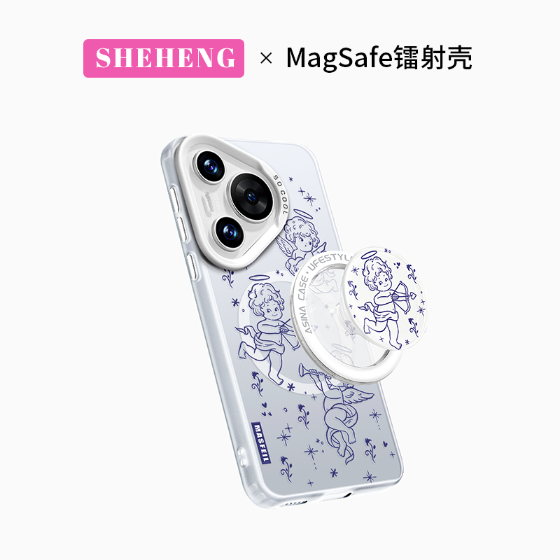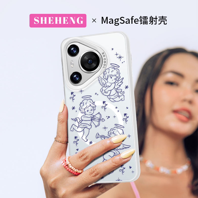 SHEHENG ×三个快乐天使适用华为pura80手机壳全包高级p40Pro防摔潮牌P70磁吸超薄pura70Pro卡通支架P50文艺