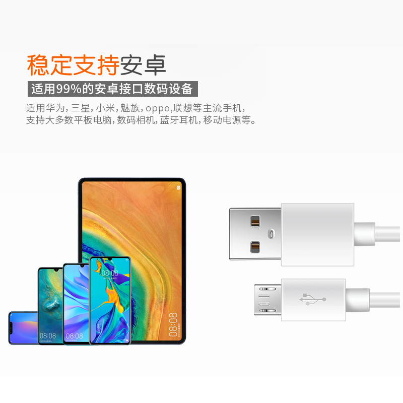 倍思安卓数据线microusb快充手机充电线器充电宝闪充蓝牙耳机小风扇台灯适用于华为荣耀oppo小米vivo加长2米