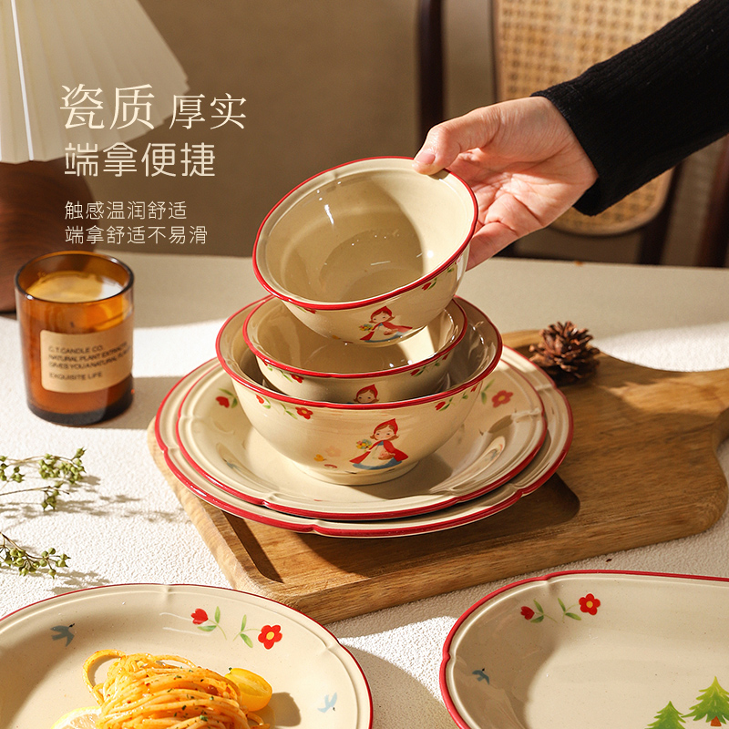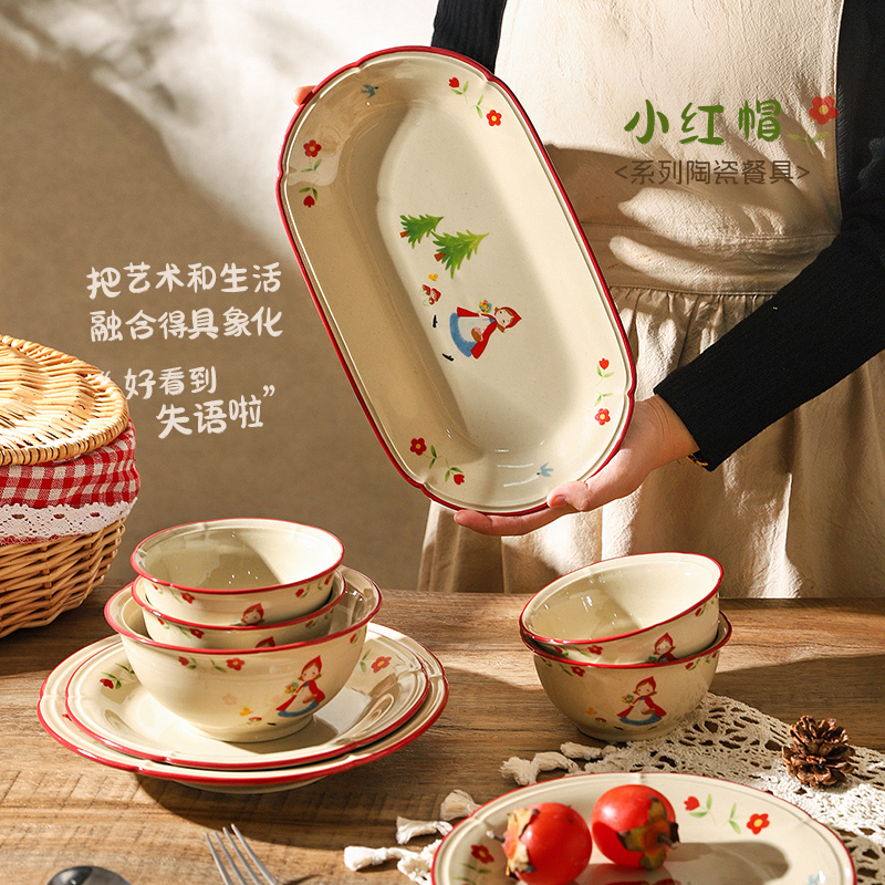 舍里小红帽卡通碗盘餐具特别好看的米饭碗可爱陶瓷小碗家用菜盘子