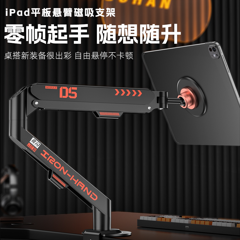 竞闪ipad磁吸支架悬浮气压VESA平板悬臂pro桌面夹液压C型Magsafe机械臂铝合金升降高度角度调节游戏直播办公