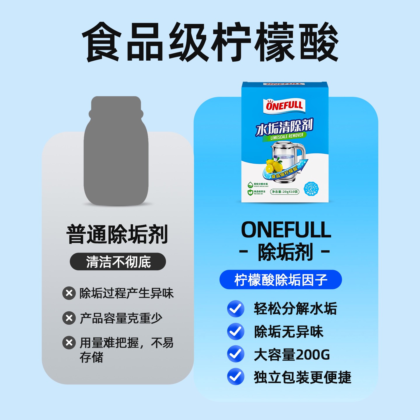 柠檬酸除垢剂电水壶清洗剂柠檬酸食品级水垢清洗茶垢去水垢清洁剂