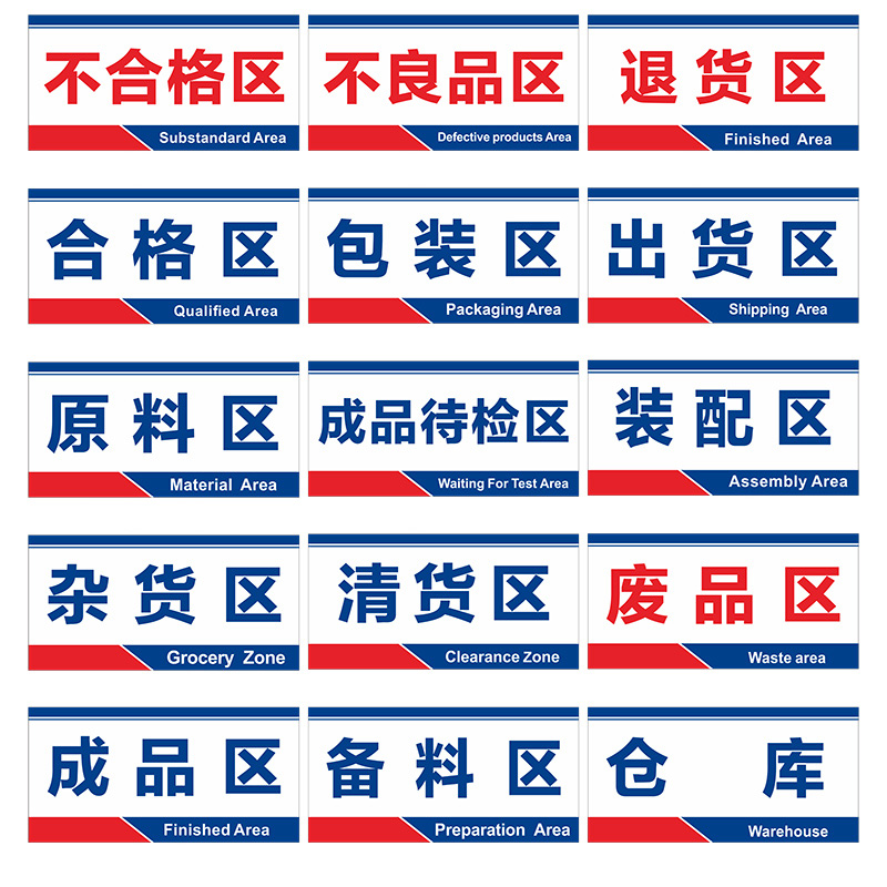 工厂车间仓库标识地贴区域划分分区验厂标志贴纸消防检查标示指示提示科室牌成品区不良品合格材料放置包装区