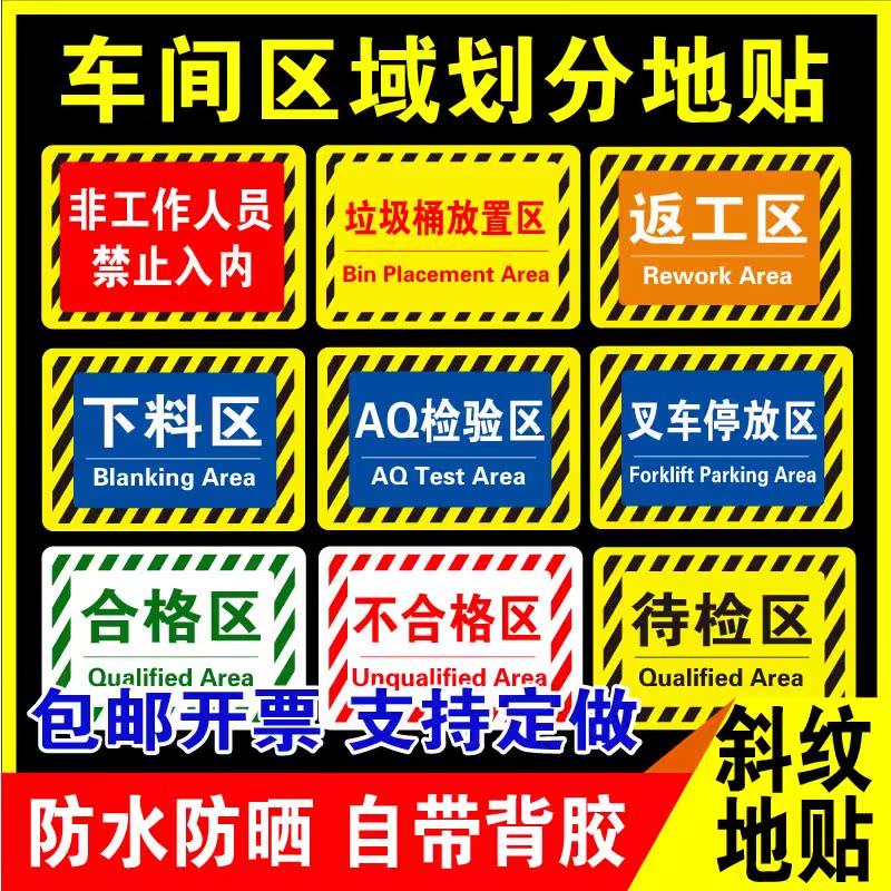 车间区域划分地贴周转区标识地贴指示指引牌挂牌生产车间防水防滑地贴标志标示牌仓库分类分区牌提示牌定制