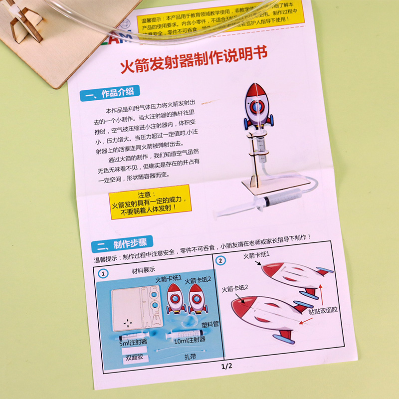 冲天火箭发射器模型制作材料包科技小制作手工DIY内能转化为机械能初中物理实验空气动力教具学具小学生儿童