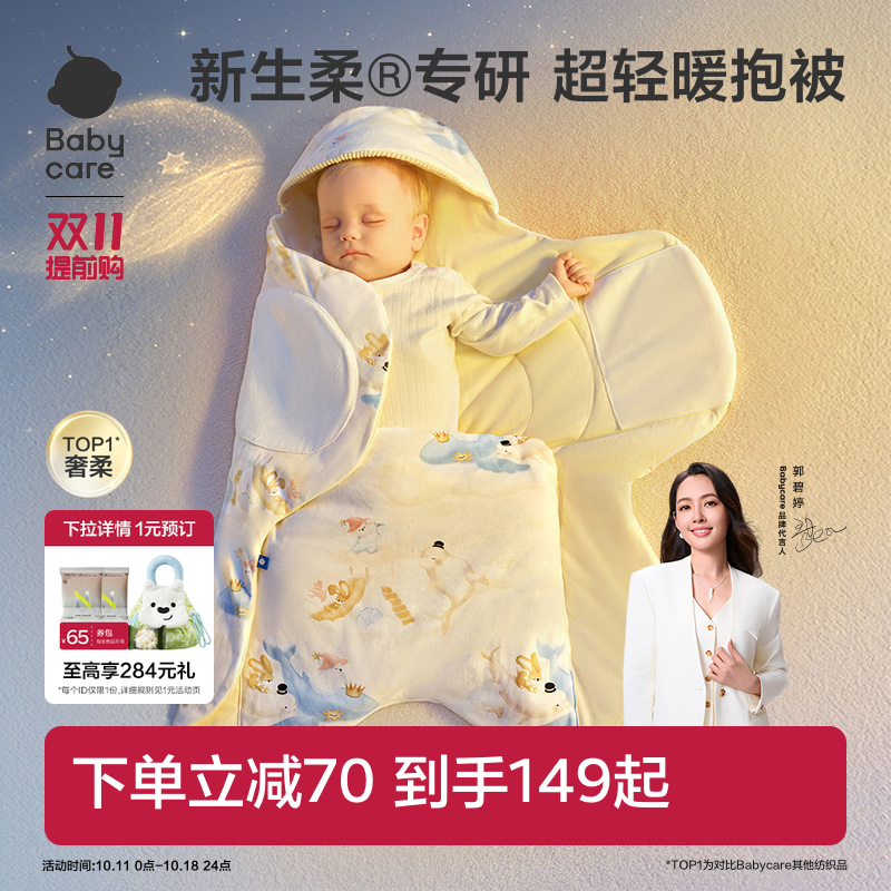 全棉时代婴儿包被秋冬季加厚款可脱胆产房用品初生抱被