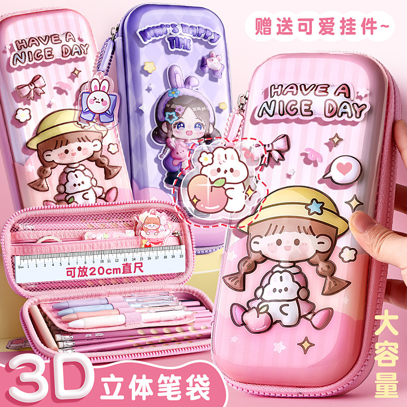 大容量3D笔袋女孩版初中生高颜值文具盒多层简约铅笔盒ins风2024女生多功能收纳包小学生六年级文具袋文具包