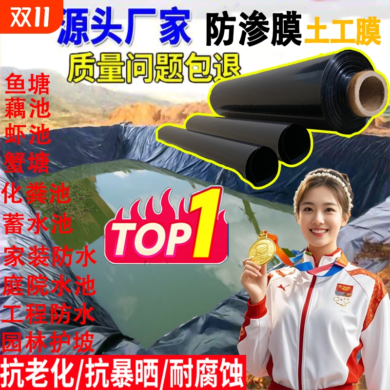鱼塘防渗膜蓄水池防水布鱼池专用塑料黑膜养殖加厚土工膜抗老化