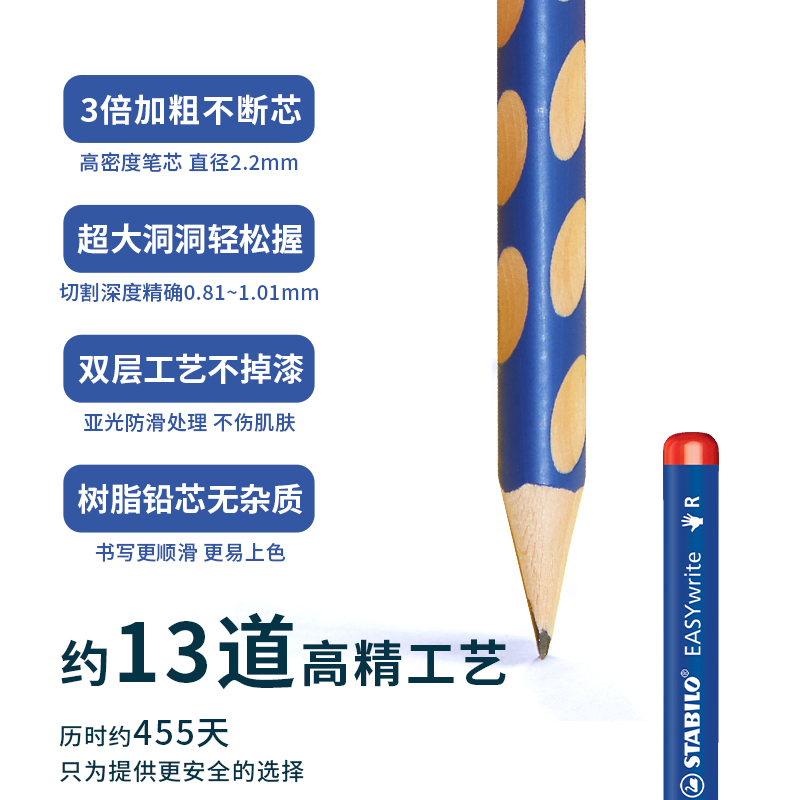 【自营】stabilo思笔乐德国洞洞铅笔HB/2H加粗三角杆胖胖铅笔小学生专初学者幼儿园儿童矫正握姿练字无毒324