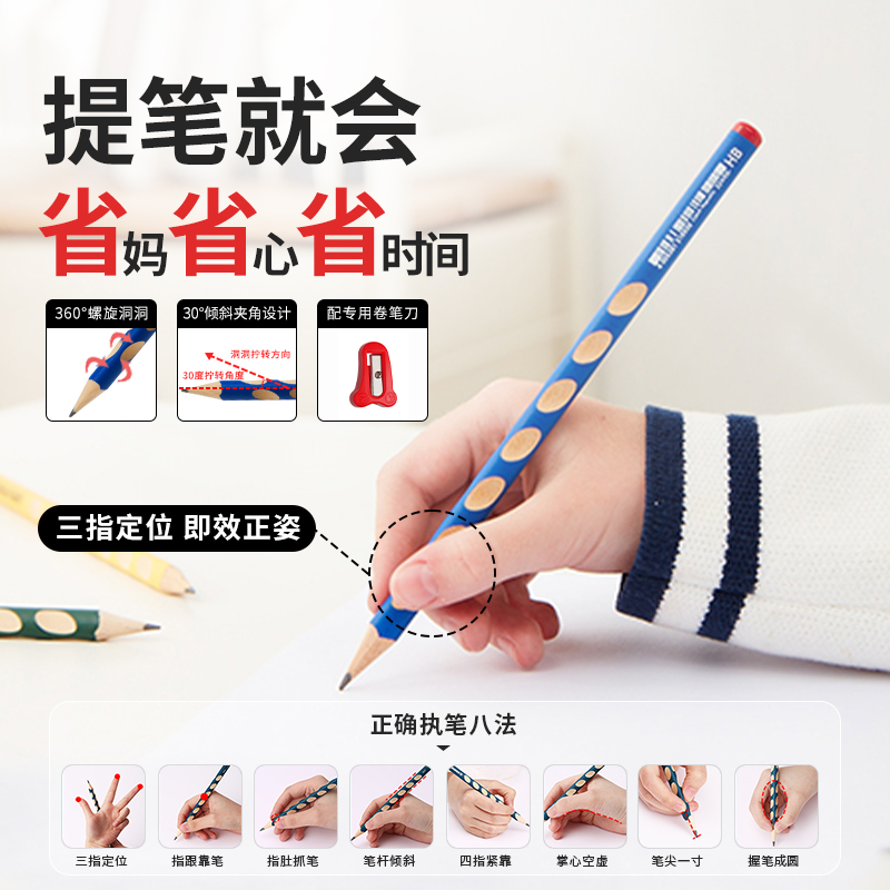 晨光文具洞洞铅笔小学生用HB铅笔矫正握姿三角杆2B一二年级练字
