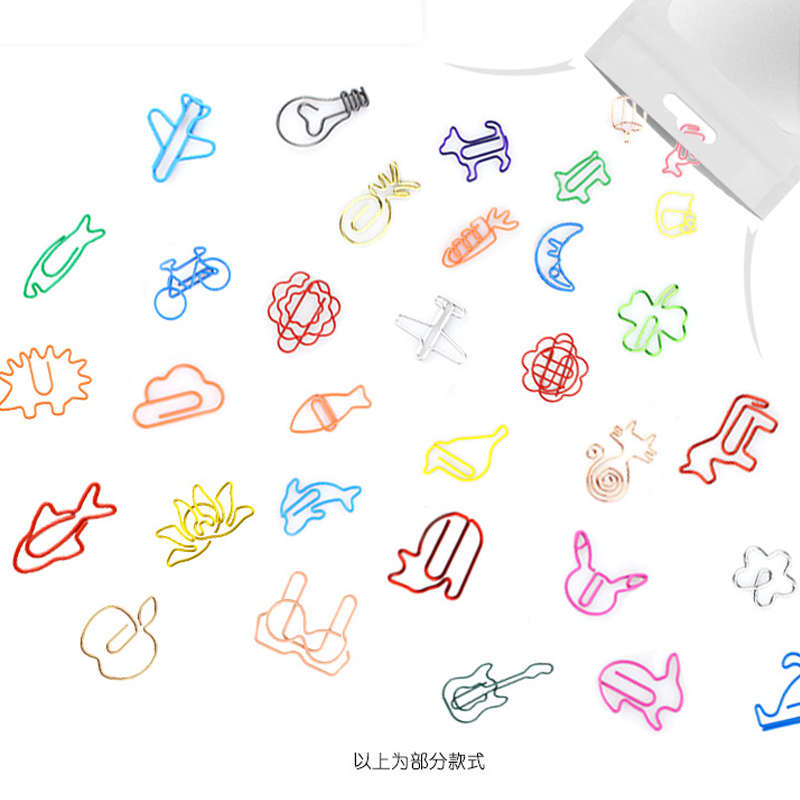 热卖彩色卡通回形针套装创意异形曲别针盲袋30个混装动物水果乐器