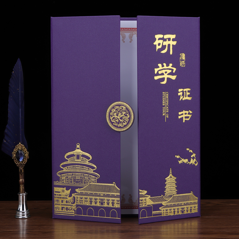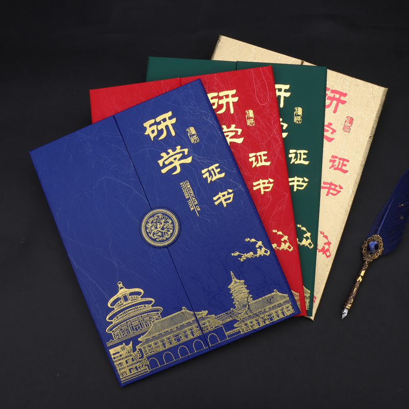 研学证书三折外壳定制烫金荣誉证书定做结业培训证红蓝色封套创意设计打印内页纸a4幼儿园学校夏令营游学证书