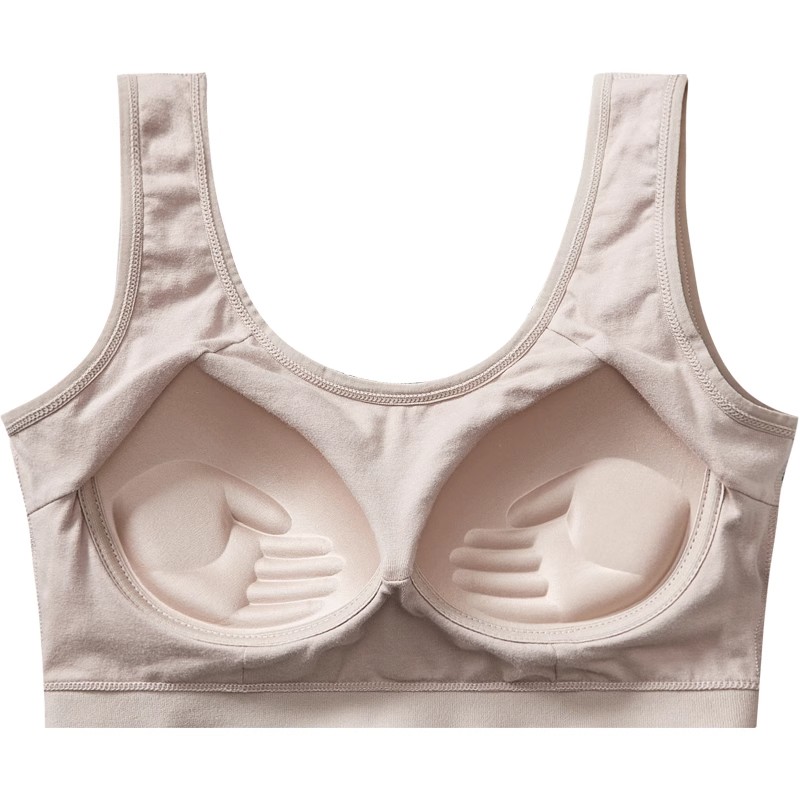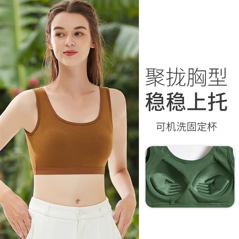 无痕背心式固定内衣女纯棉透气一体大胸显小文胸罩全罩杯聚拢美背