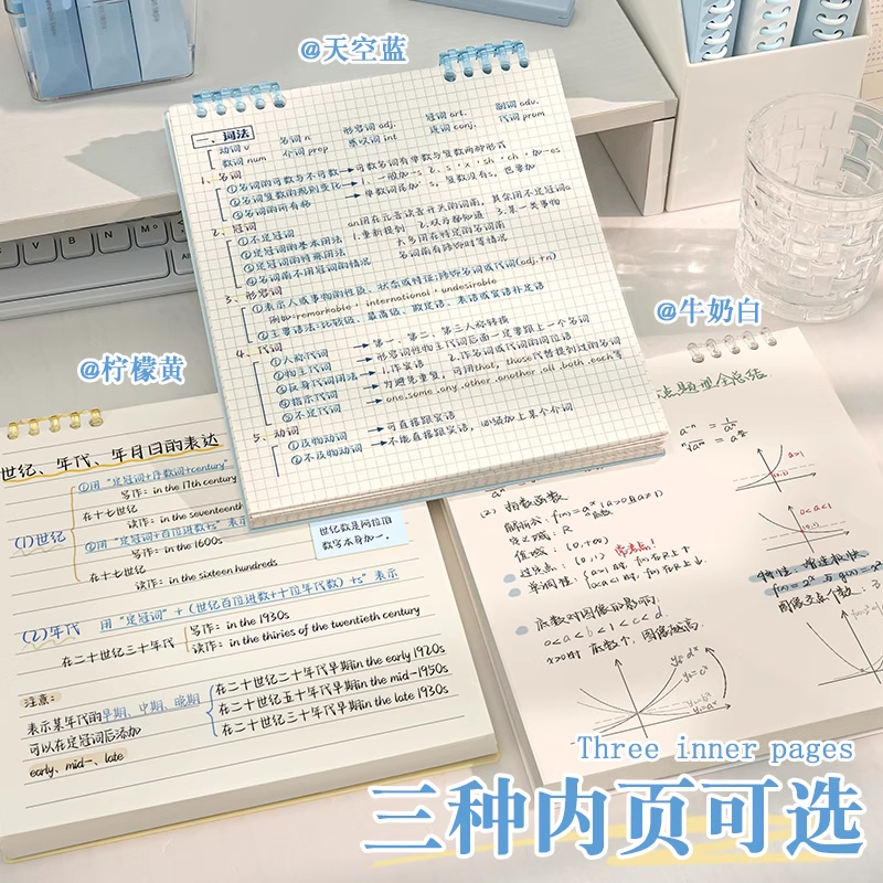 上翻活页笔记本可拆卸方格本网格本子高颜值初中生专用高中格子小方格方形本复古考研加厚2025新款文具草稿纸