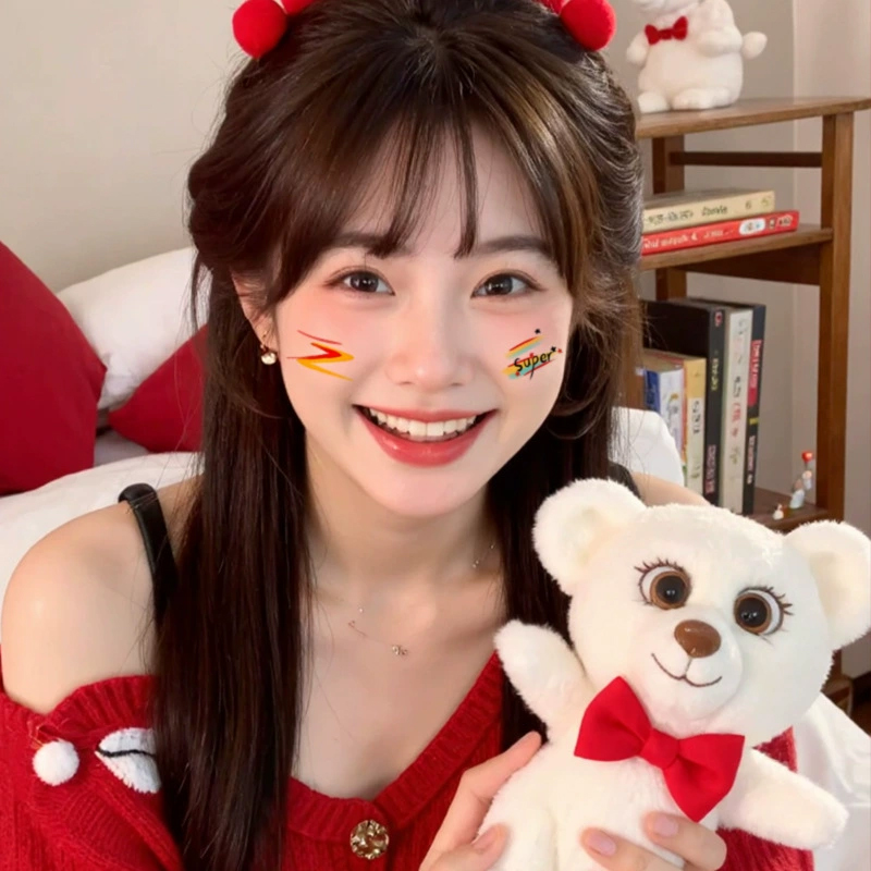 彩虹妆造贴脸上旅游拍照打卡化妆贴持久防水演唱会氛围彩绘脸部贴纸运动会儿童节日爱国活动彩虹圈脸部妆容贴