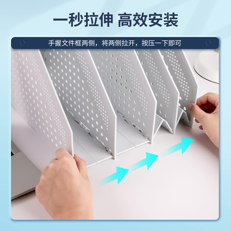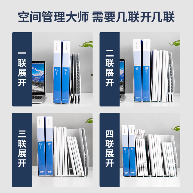 得力折叠文件架书立可折叠文件框小清新桌面文具收纳学生大号书架折叠书立架桌面文件盒办公用品四联78996
