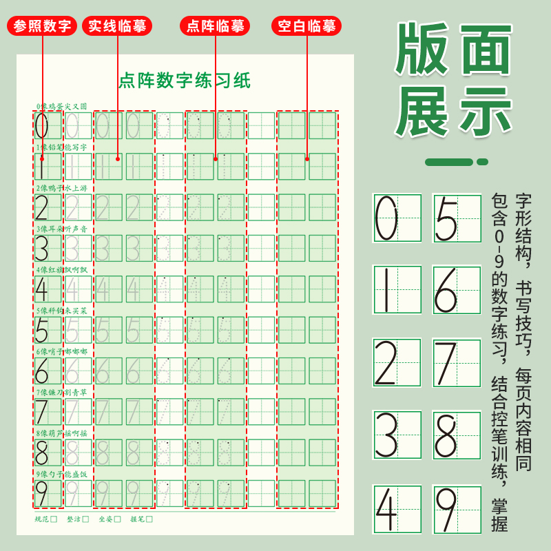 儿童入门初学者每日一练全套练字本数字练字帖幼儿点阵控笔训练幼儿园字帖幼小衔接写字帖描红本练习册教材