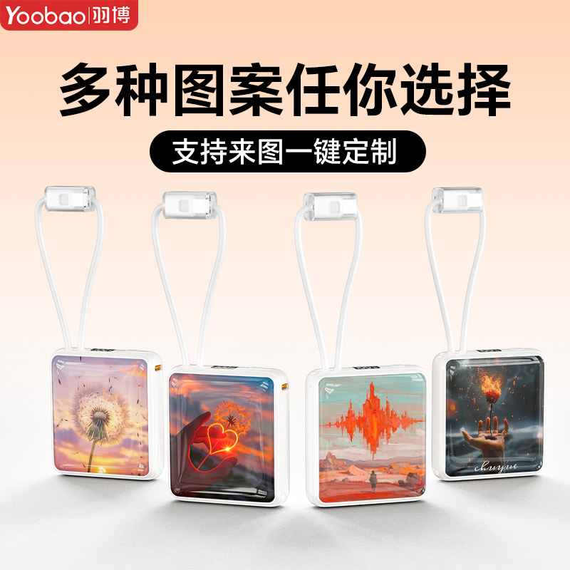 【3C认证可上飞机】羽博2025新款彩绘风景迷你充电宝自带线10000毫安超级快充22.5W便携移动电源适用华为苹果